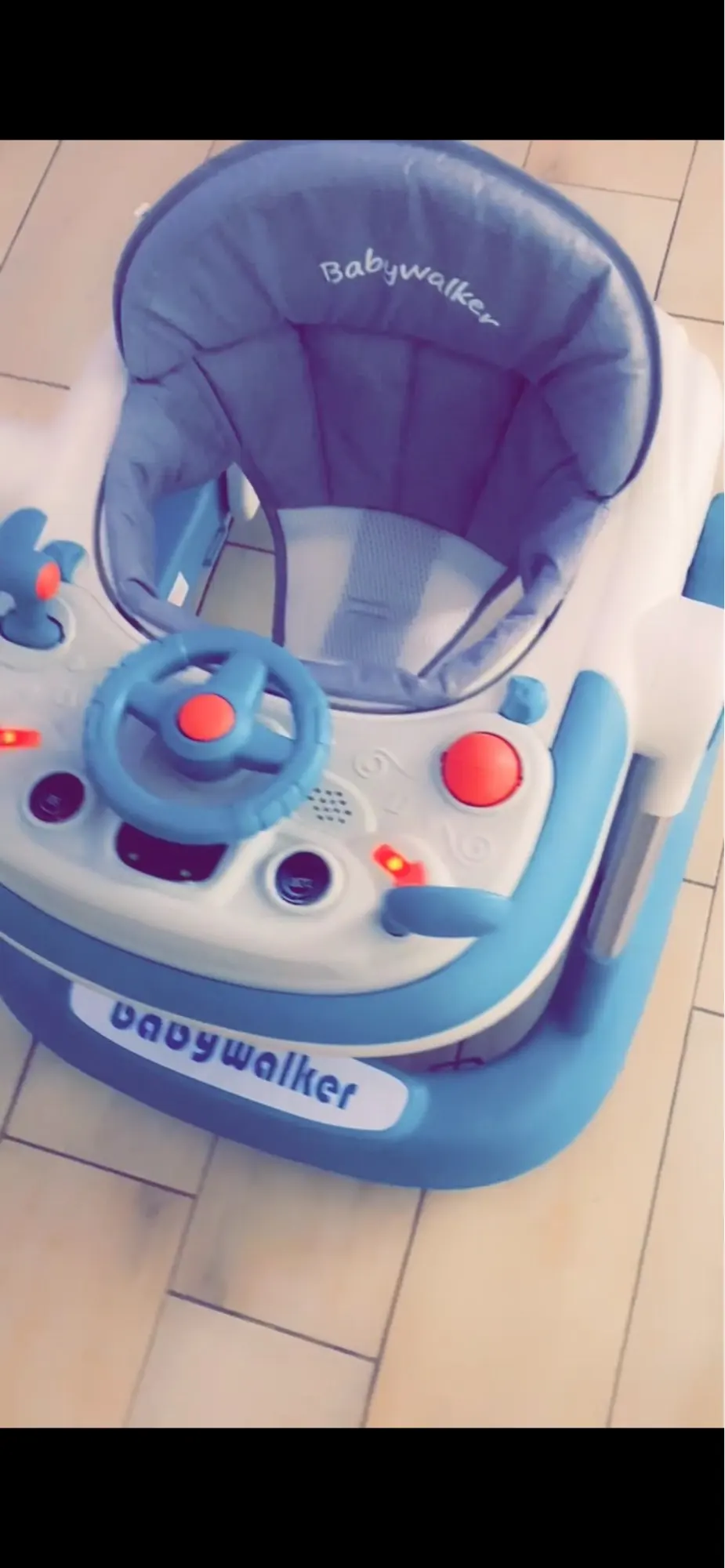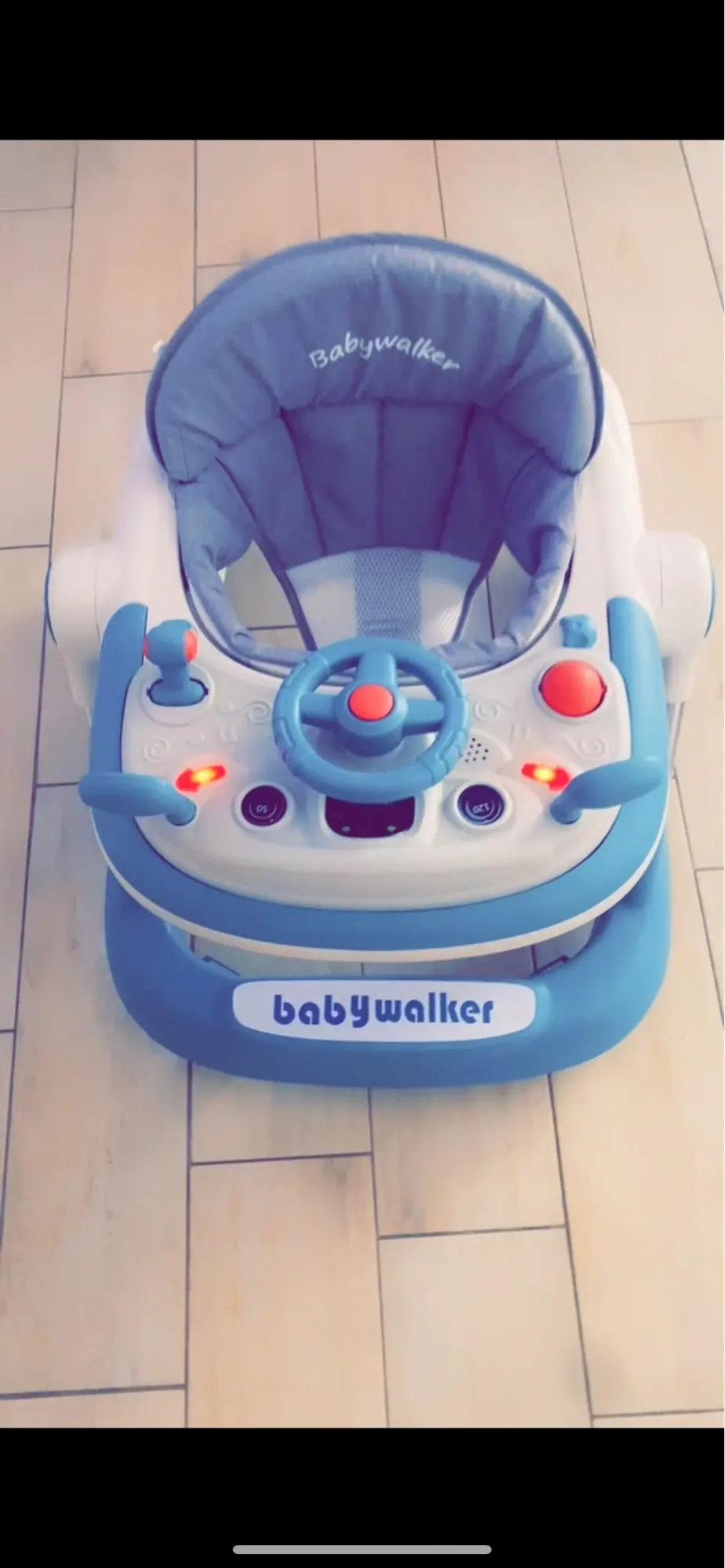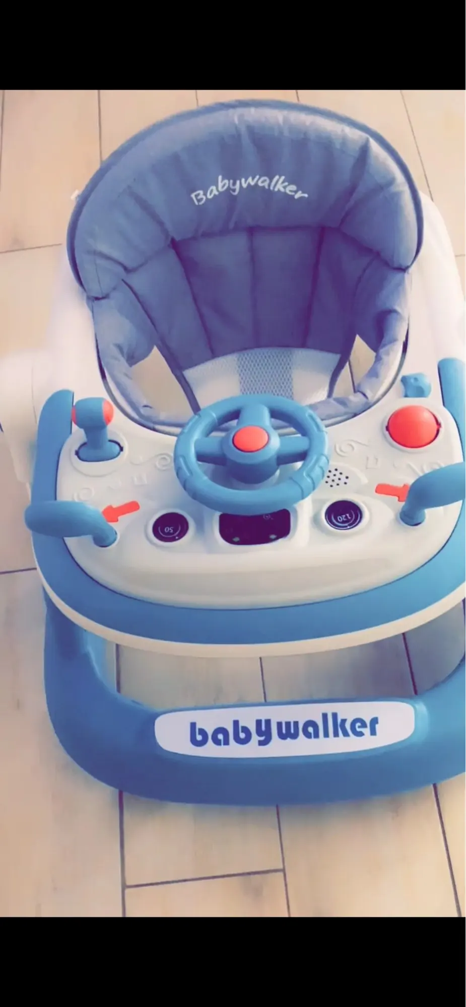 2 in 1 Baby Walker, Toddler Baby Push Walker with Removable Feeding Tray and Music Tray(Without Battery), Foldable Walker