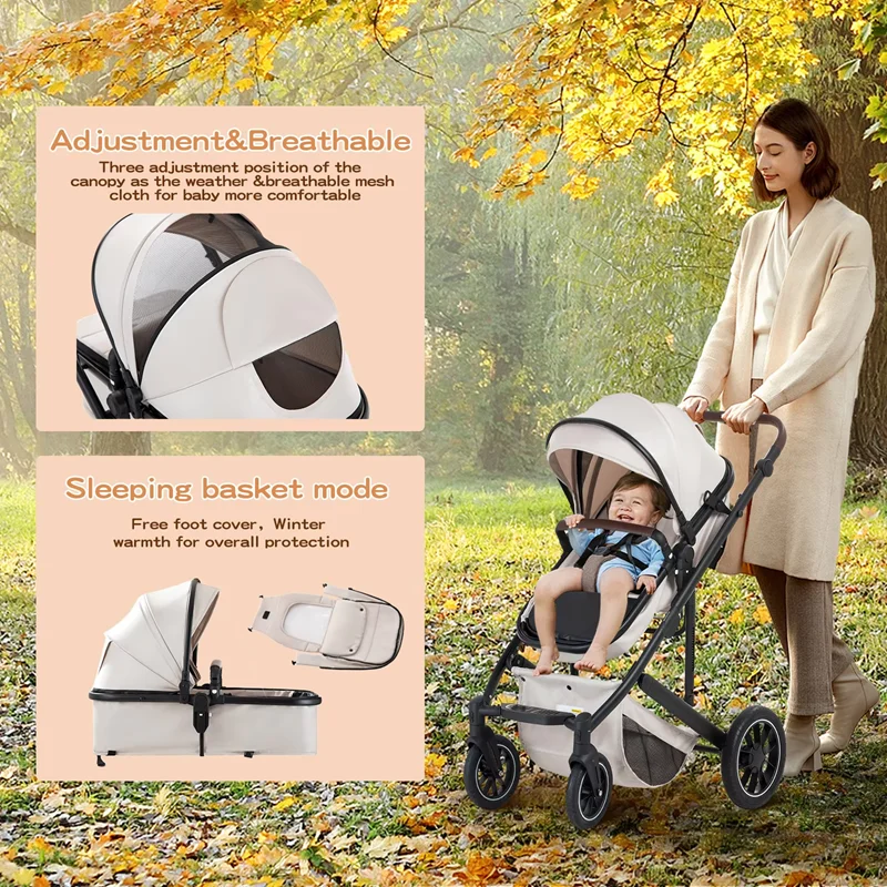 Luxurious 3 in 1 Portable Baby Stroller, Foldable Travel Pram, Built On Strong Aluminium Frame